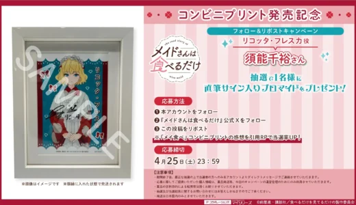 新着記事 『カミとミコ』発売日決定!赤坂アカが描く新たな世界創造アドベンチャーの全貌と豪華特典を徹底解説 2026-04-19 ニュースNEW TVアニメ『メイドさんは食べるだけ』コンビニプリントで推し活!リコッタ役・須能千裕さんの直筆サイン入りブロマイドが当たるXキャンペーン開催 2026-04-19 ニュースNEW ClariS新曲「Revive」がアニメ『勇者のクズ』第2クールOPテーマに決定!『リコリコ』新曲も収録の豪華シングルを徹底解説 2026-04-19 ニュースNEW 【新連載】『まだ君を見上げてる』ギャルとオタクが織りなす人生再生物語!コミックDAYSで無料で読める? 2026-04-18 ニュースNEW 【まほあこ×まほおね】豪華コラボ特典付き!『元魔法少女のお姉さんは恋を知りたい』第2巻が4月16日発売! 2026-04-18 ニュースNEW 高橋留美子最新作『MAO』ステンドグラス風新作グッズが登場!アニメ放送開始記念の豪華ラインナップを見逃すな! 2026-04-18 ニュースNEWView More