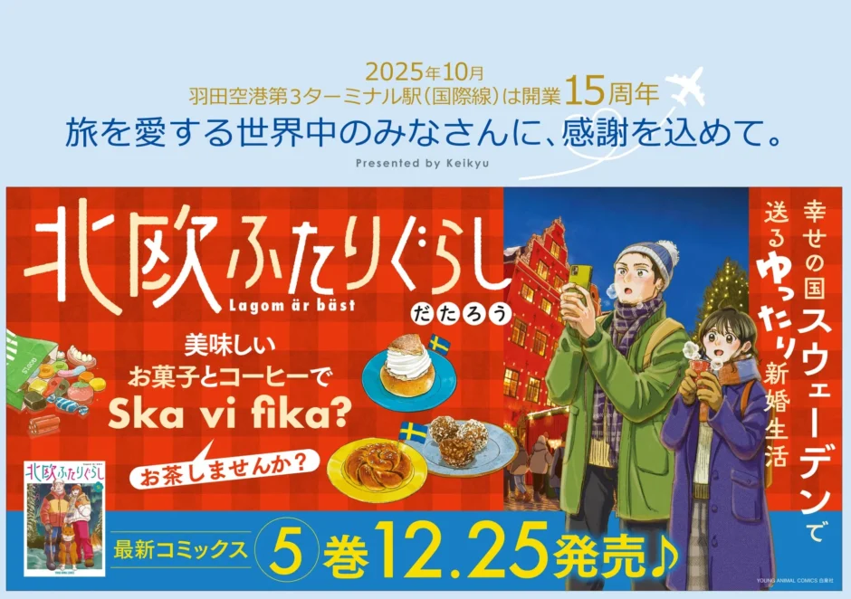 スウェーデン移住の新婚生活を描く『北欧ふたりぐらし』完結5巻発売!京急線で記念中づり広告も実施中