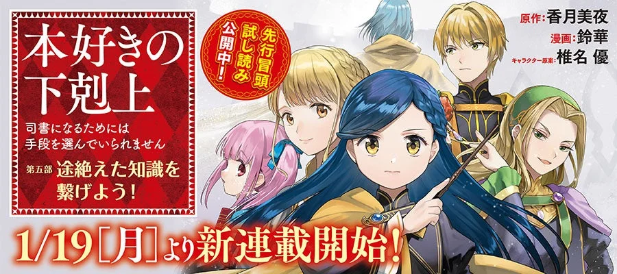 多くのマンガ愛好家から熱い支持を受ける人気シリーズ『本好きの下剋上』。ついにそのコミカライズ版の最終章となる【第五部】が、漫画配信サイト「コロナEX」にて2025年1月19日(月)11時より連載を開始します。シリーズ累計1200万部を突破するこの大作の新たな展開に、期待が高まります。