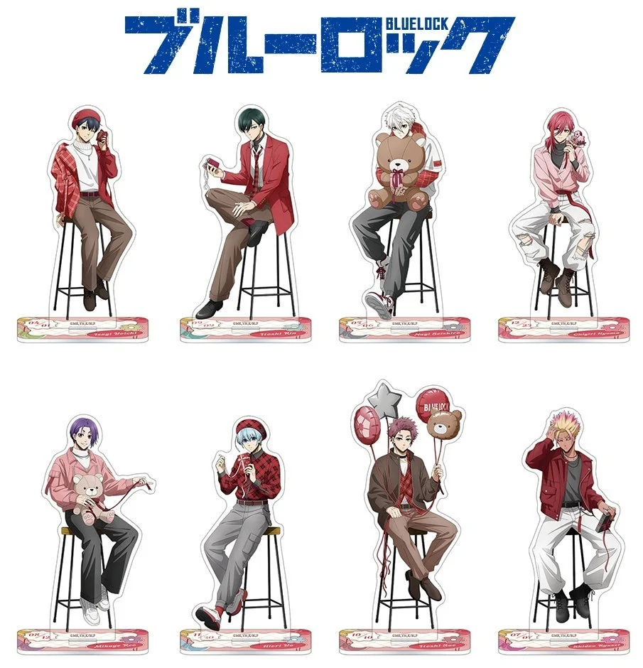 等身絵柄のアイテムには、潔世一や糸師凛たちがバレンタインを意識した服装で登場。キャラクターの個性が際立つデザインで、コレクションにも最適です。