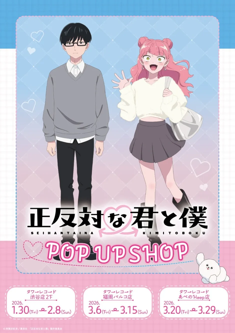 「ジャンプ+」で人気を博し、現在TVアニメも放送中の『正反対な君と僕』。この作品のポップアップショップが、2026年1月30日(金)よりタワーレコード各店で開催されることが決定しました。